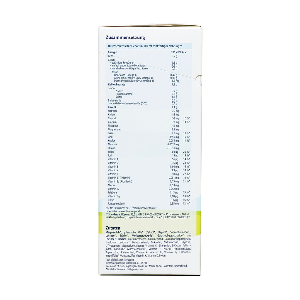 - Hipp BIO Combiotik® Stage 3 From 10 Months 600g (German Box and Formulation) formula is based on:
