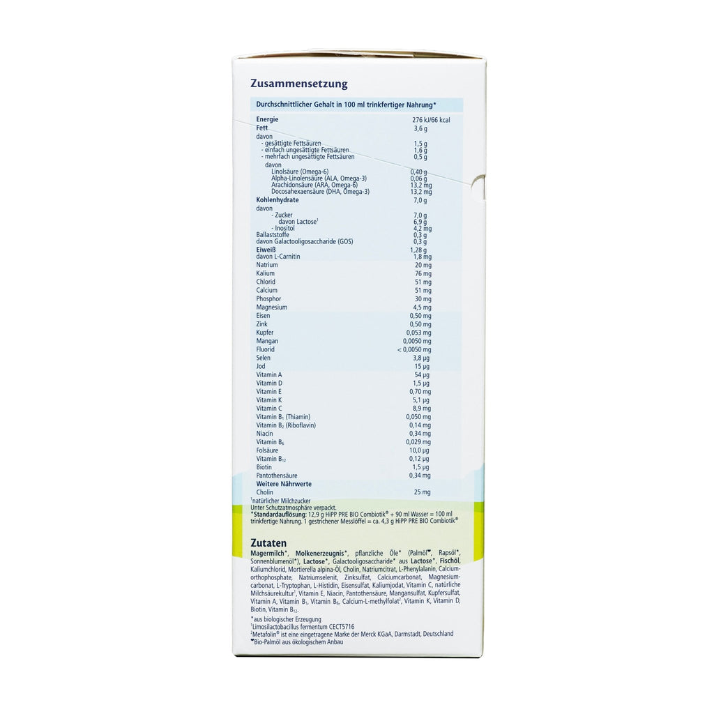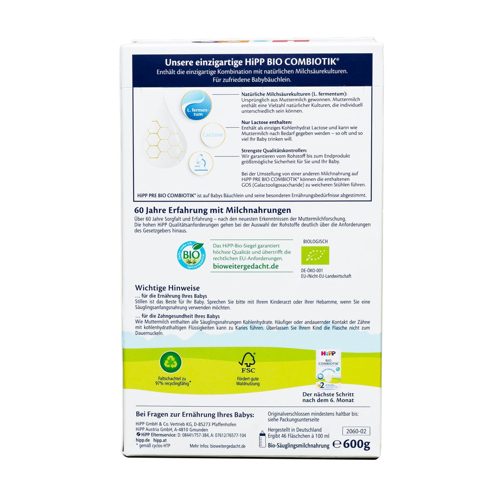 Milk and milk products (including lactose) Country of origin: Germany cooling (<25 °), dry place. Hipp GmbH & Co. Vertriebs KG 85276 Pfaffenhofen